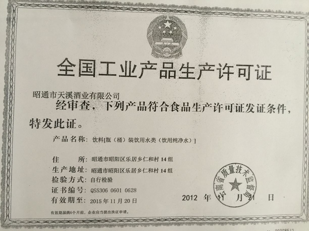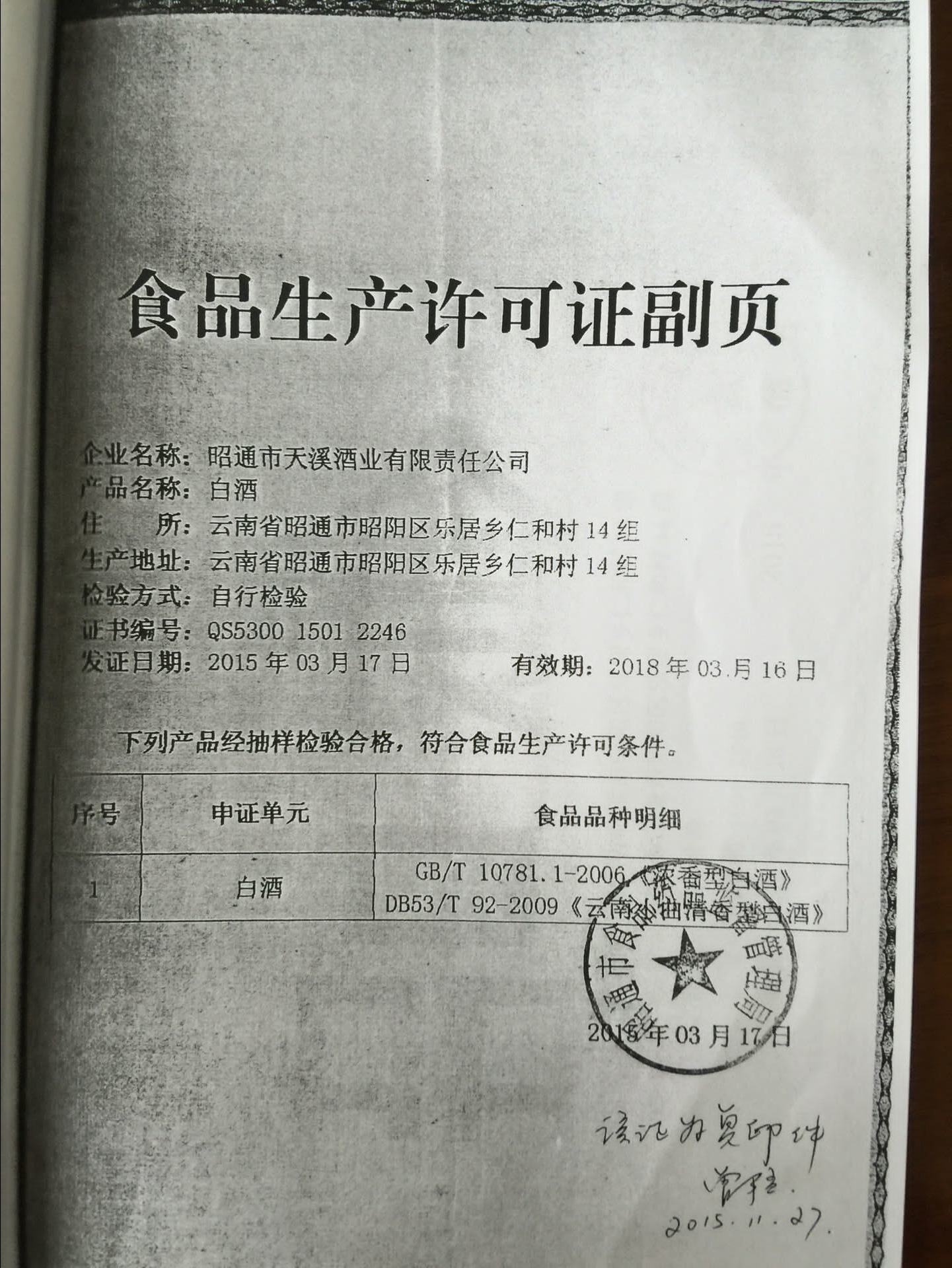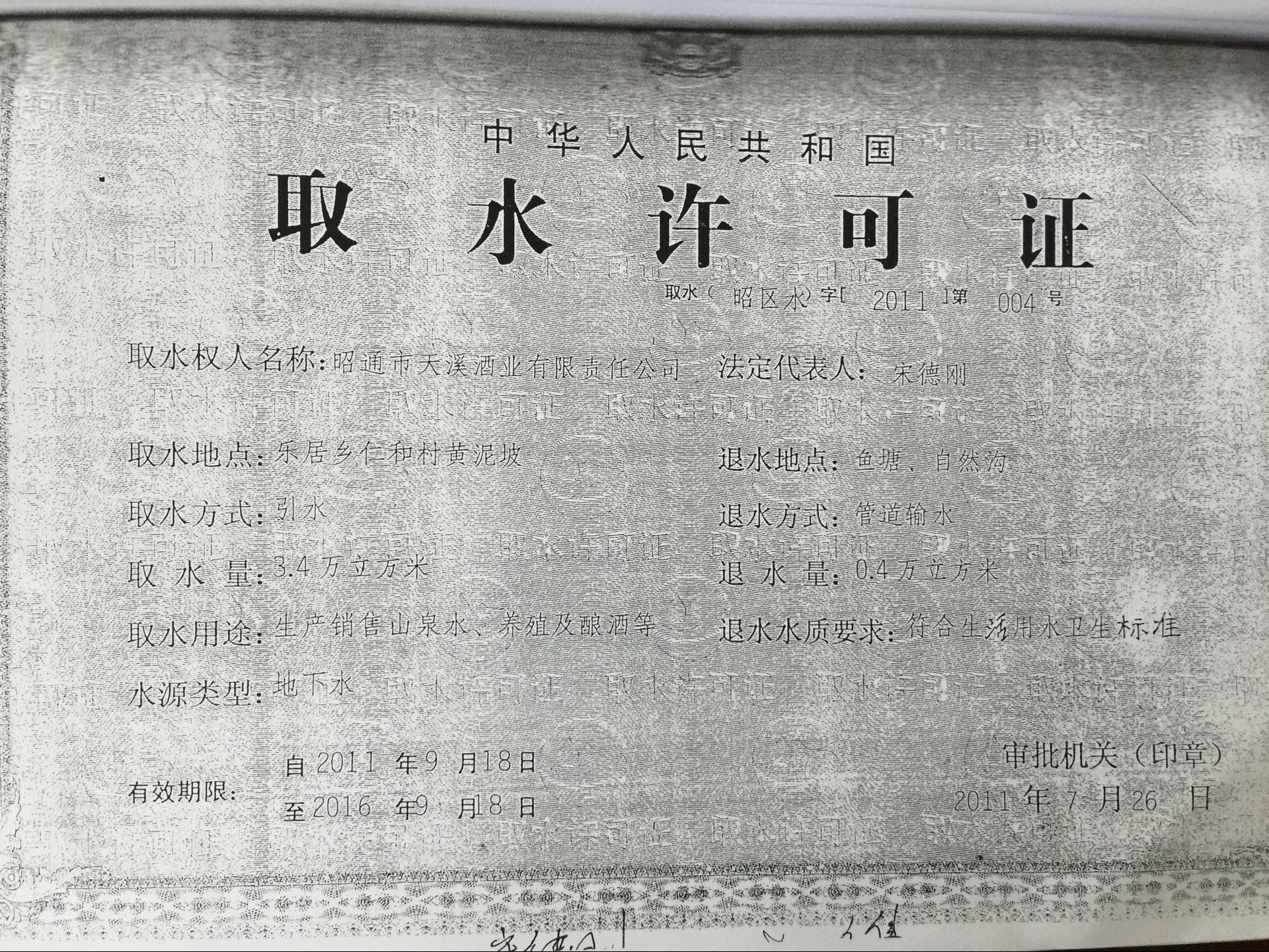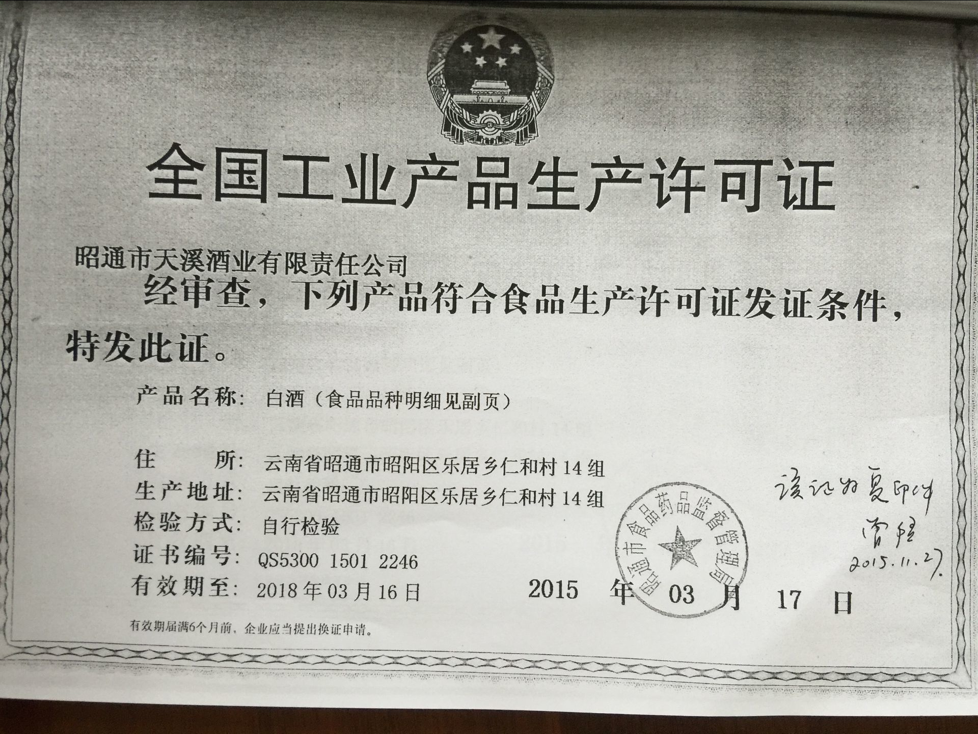 昭通市天溪酒業(yè)有限公司資質(zhì)證照復印件
