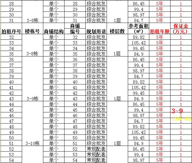 (二)拍租二個(gè)及其以上合并為一個(gè)商鋪6間,使用期5年,每間商鋪預(yù)交競(jìng)租保證金2萬(wàn)元至3萬(wàn)元不等,詳見商鋪簡(jiǎn)介(欲競(jìng)租多間商鋪,保證金類推)。