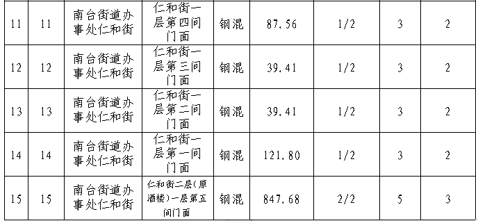 拍租15個(gè)國有門面使用權(quán),詳見下表: